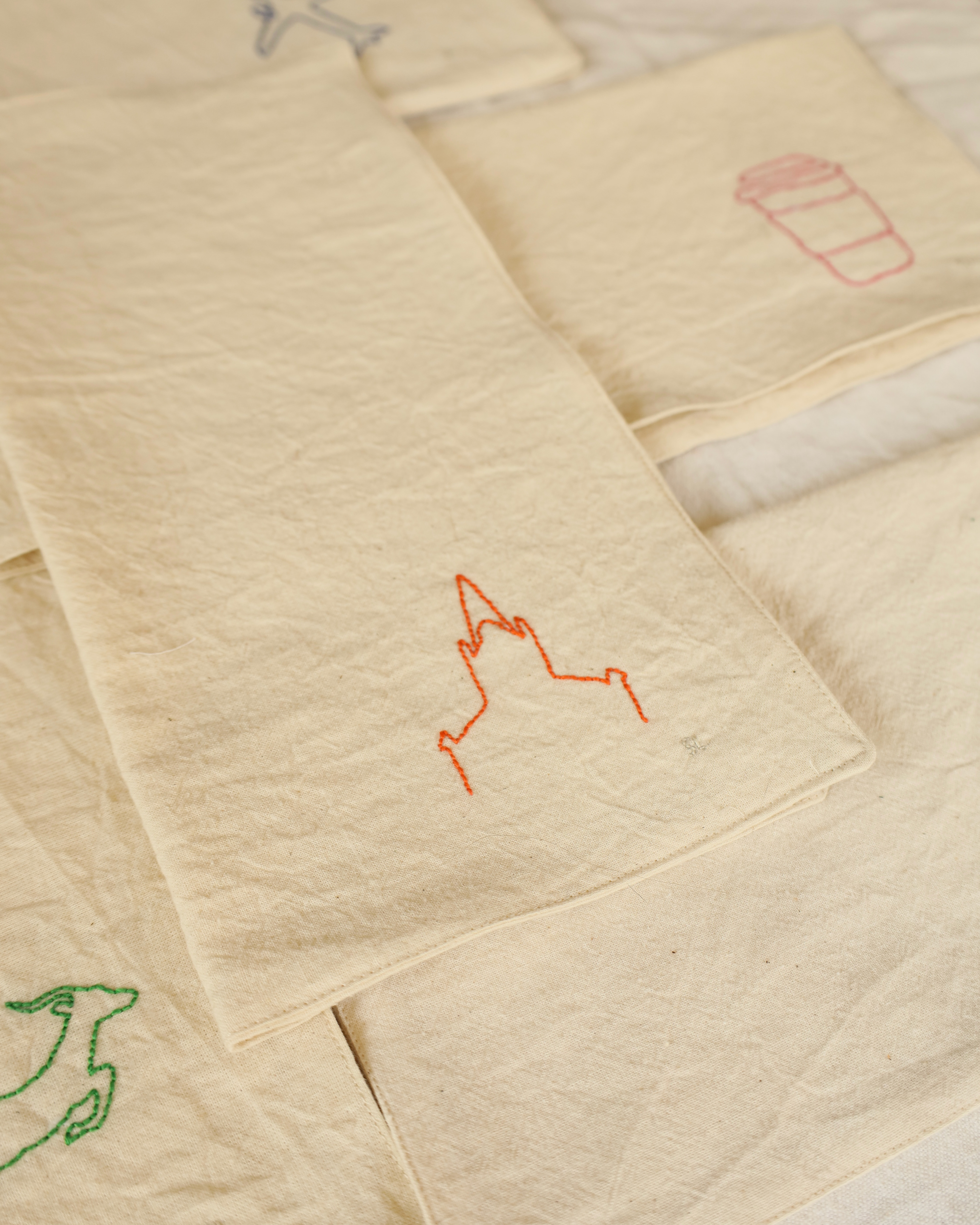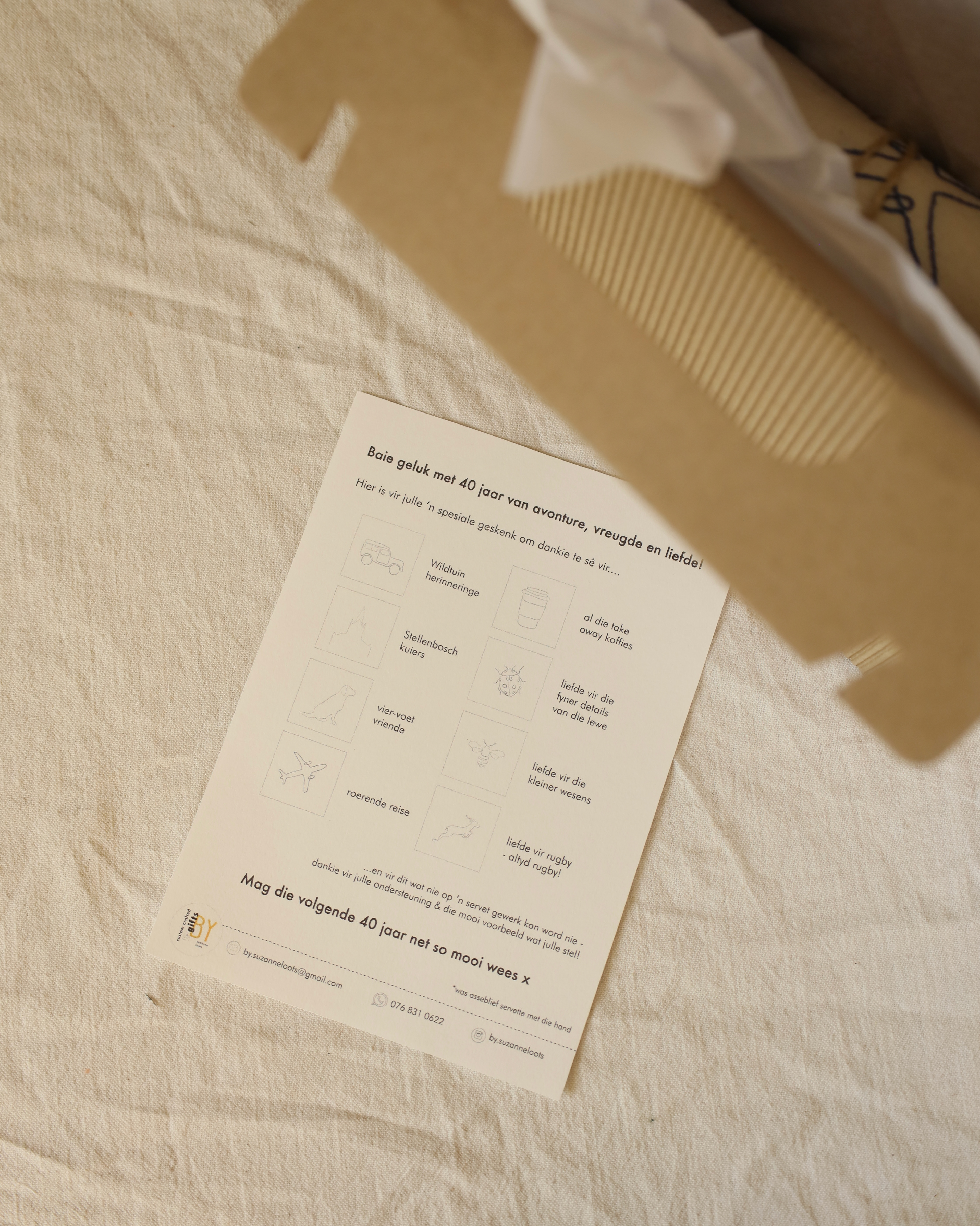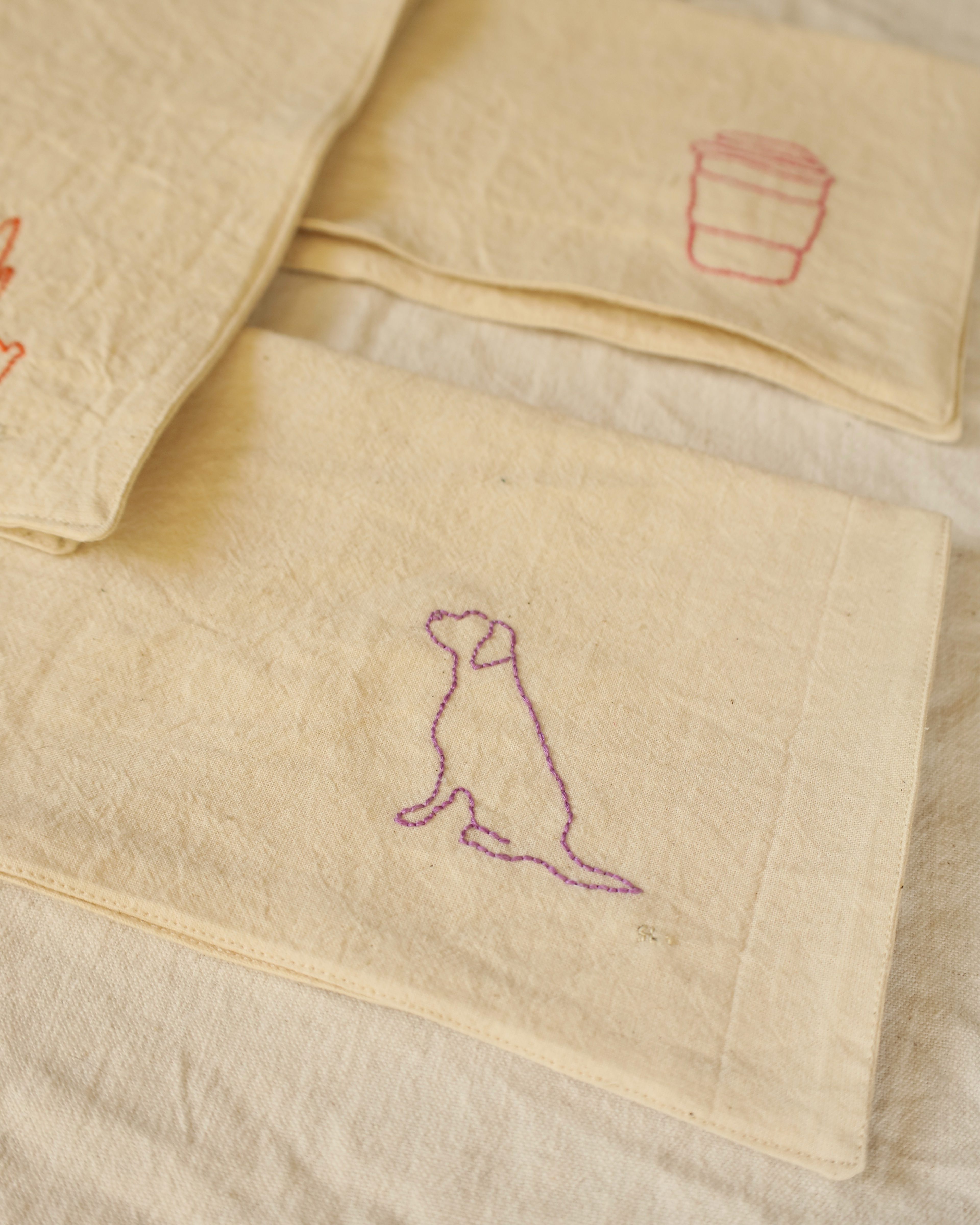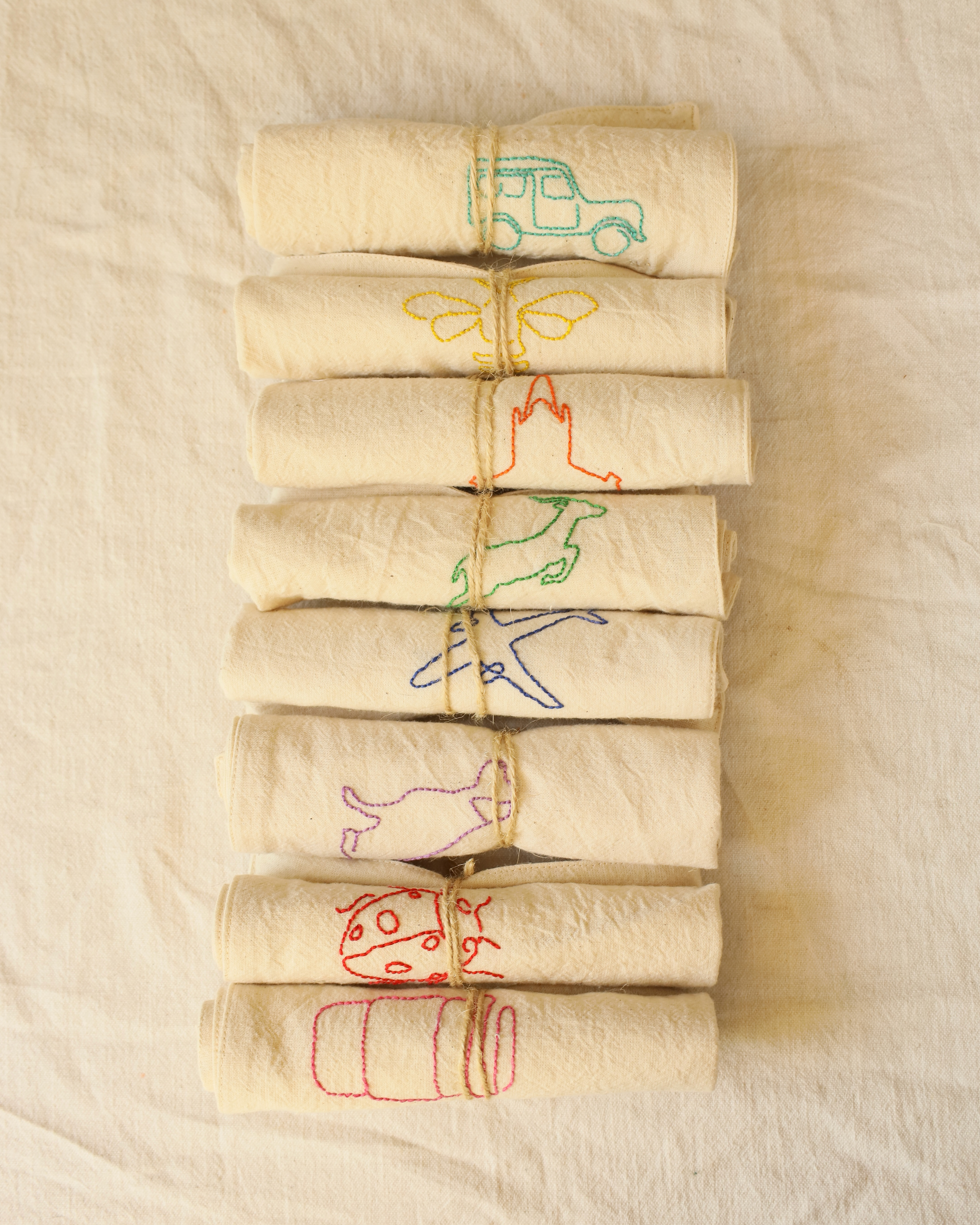 Eight serviettes with bright hand embroidery - each icon representing something that is special to their family. As Liezel and I spoke about her parents and her childhood she said “ag, we’re just a normal family”. But the way in which she spoke about her parents, the love they share and the love she has for them and her brother isn’t normal. It is in fact very rare and só beautiful to witness!