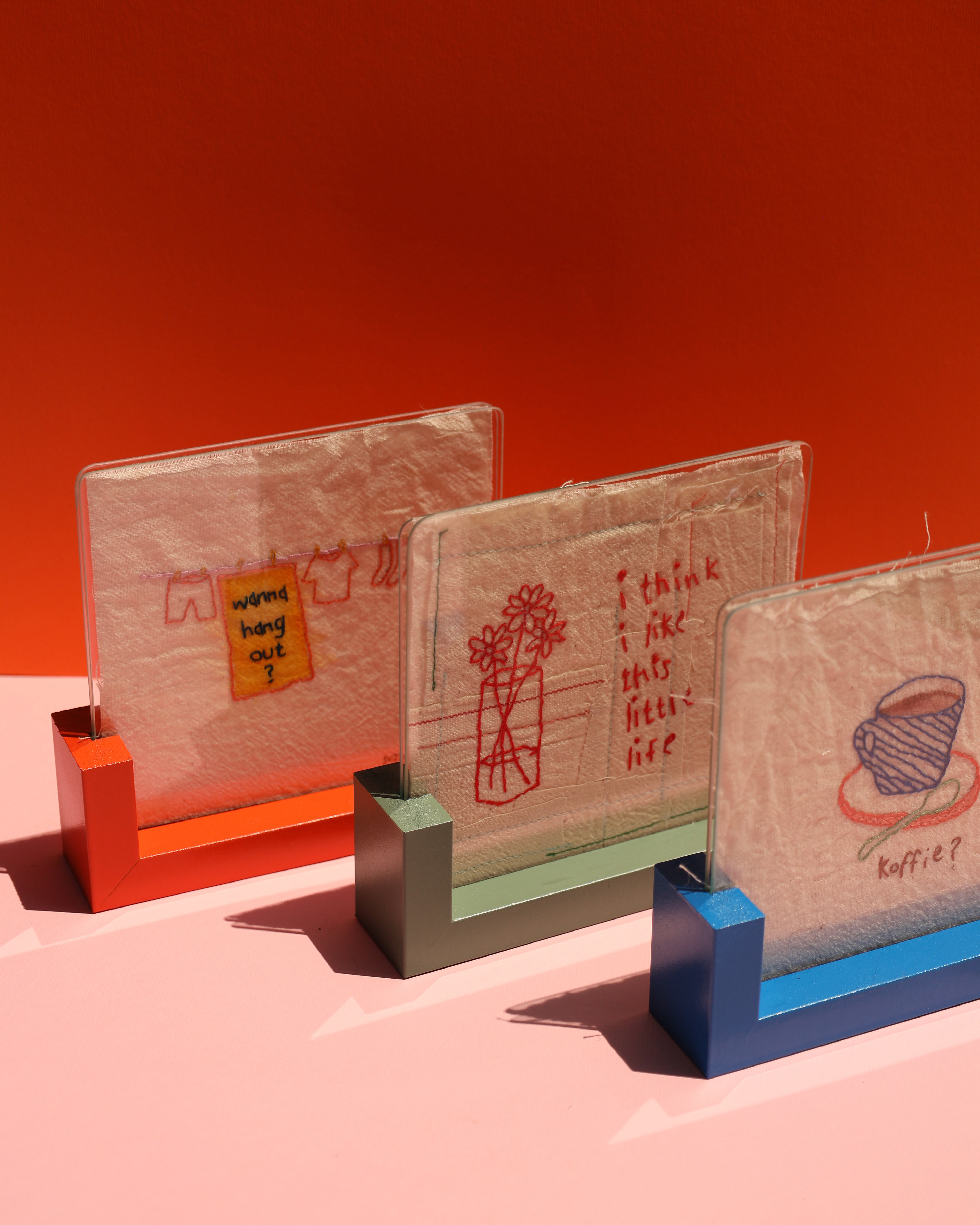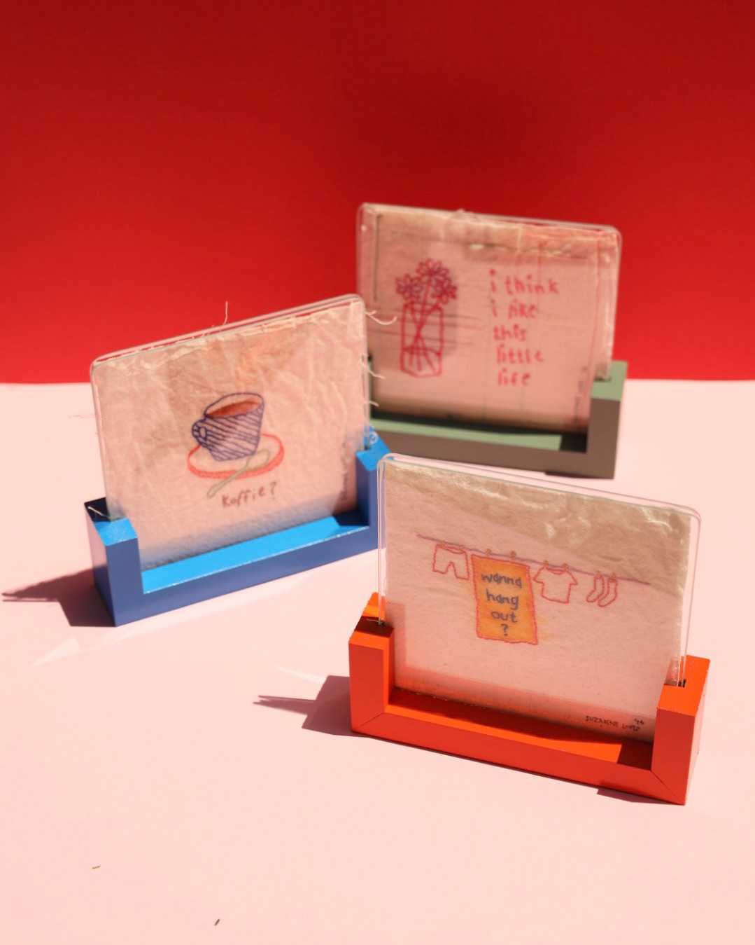 Works are 12cm x 12cm & will all be framed like these three cuties.