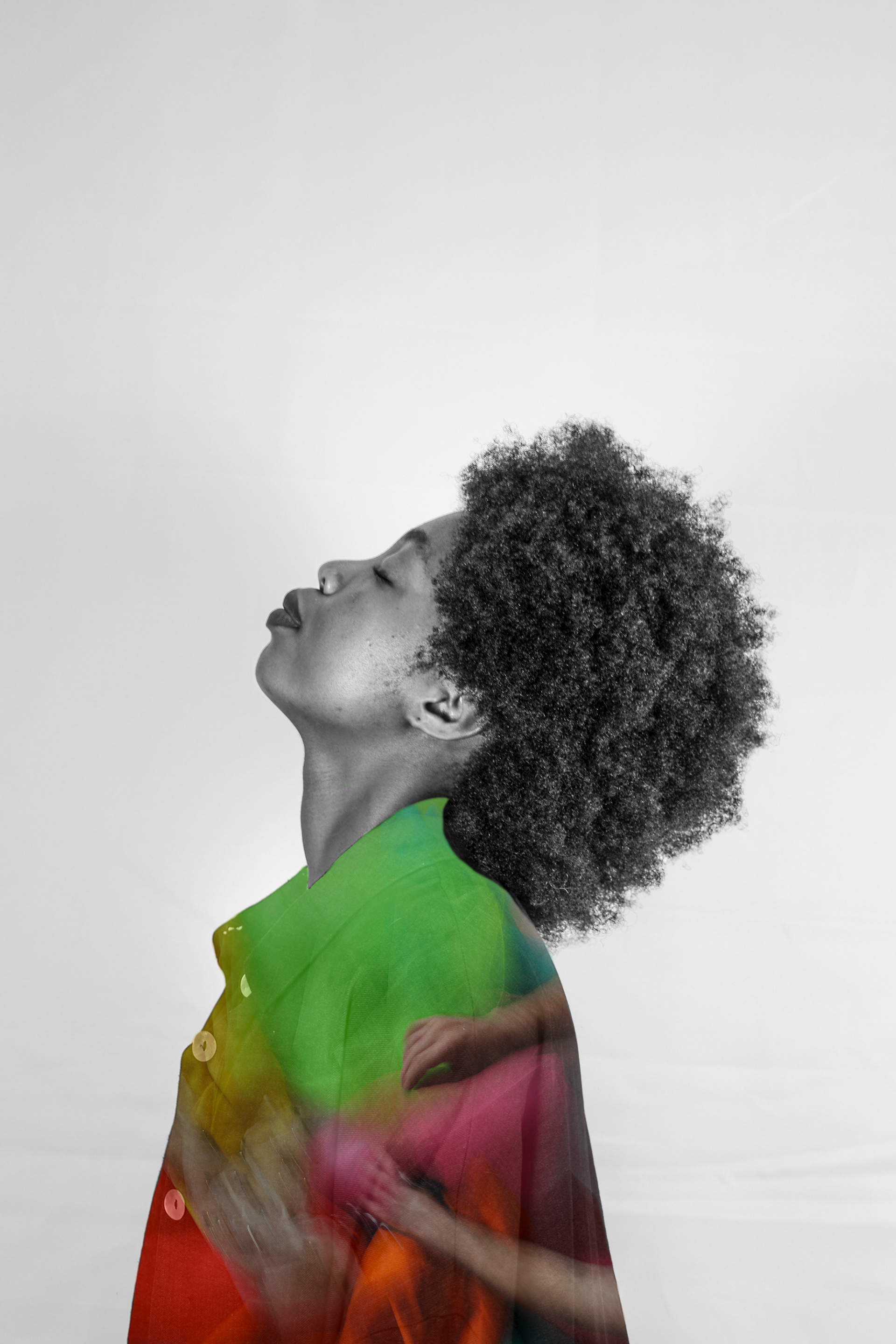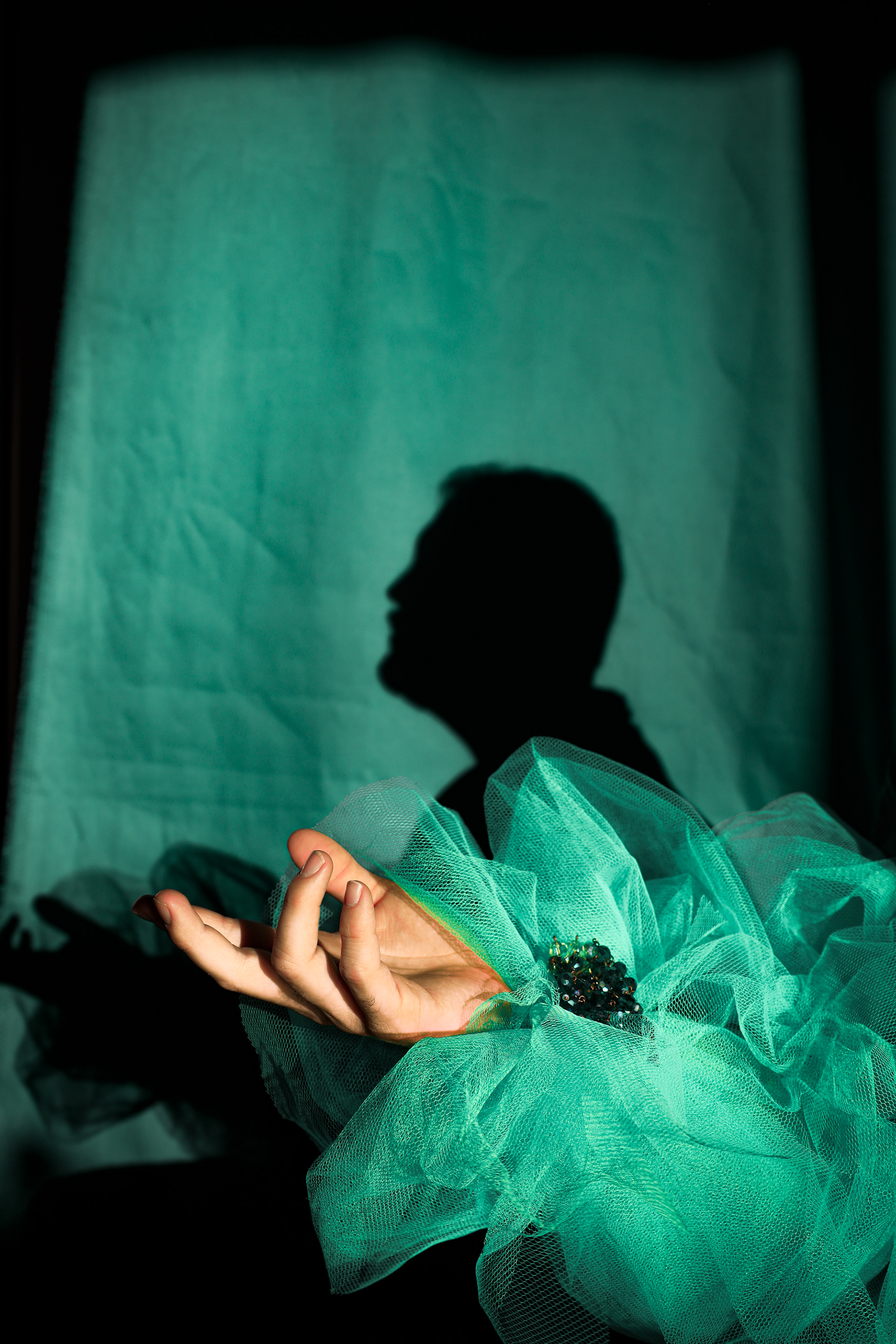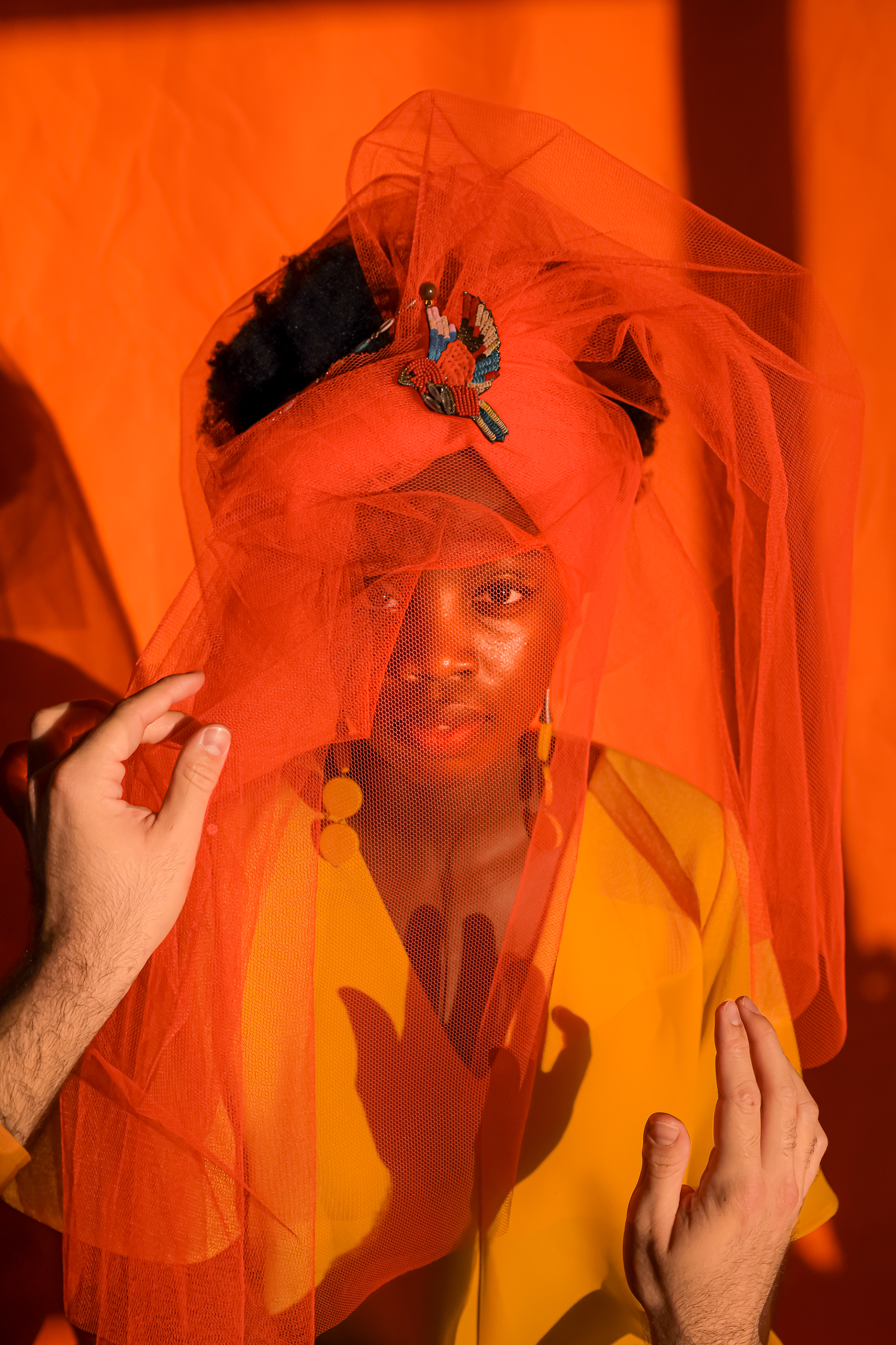 Theatre of Fabric(ation) is a study of the relationship that emerges between the self and creativity. The subjects featured in this series are not professional models but rather two veterinary professionals working nine to five jobs. They are rarely able to express themselves outside of the capitalistic workspace. This conceptual project provided them with a stage on which they could become actors in the theatre of fabrications: an alternative reality, a dreamscape.The series aims to capture the nudges that creativity gives us until we finally decide to collaborate with it. Out of this collaboration sprouts a process of colourful discovery and bold self-expression. This encounter with creativity leaves us in a state of calm – knowing that our collaboration was fabricated and unlived, but as we return to reality it travels with us as an ideal of what could be different.