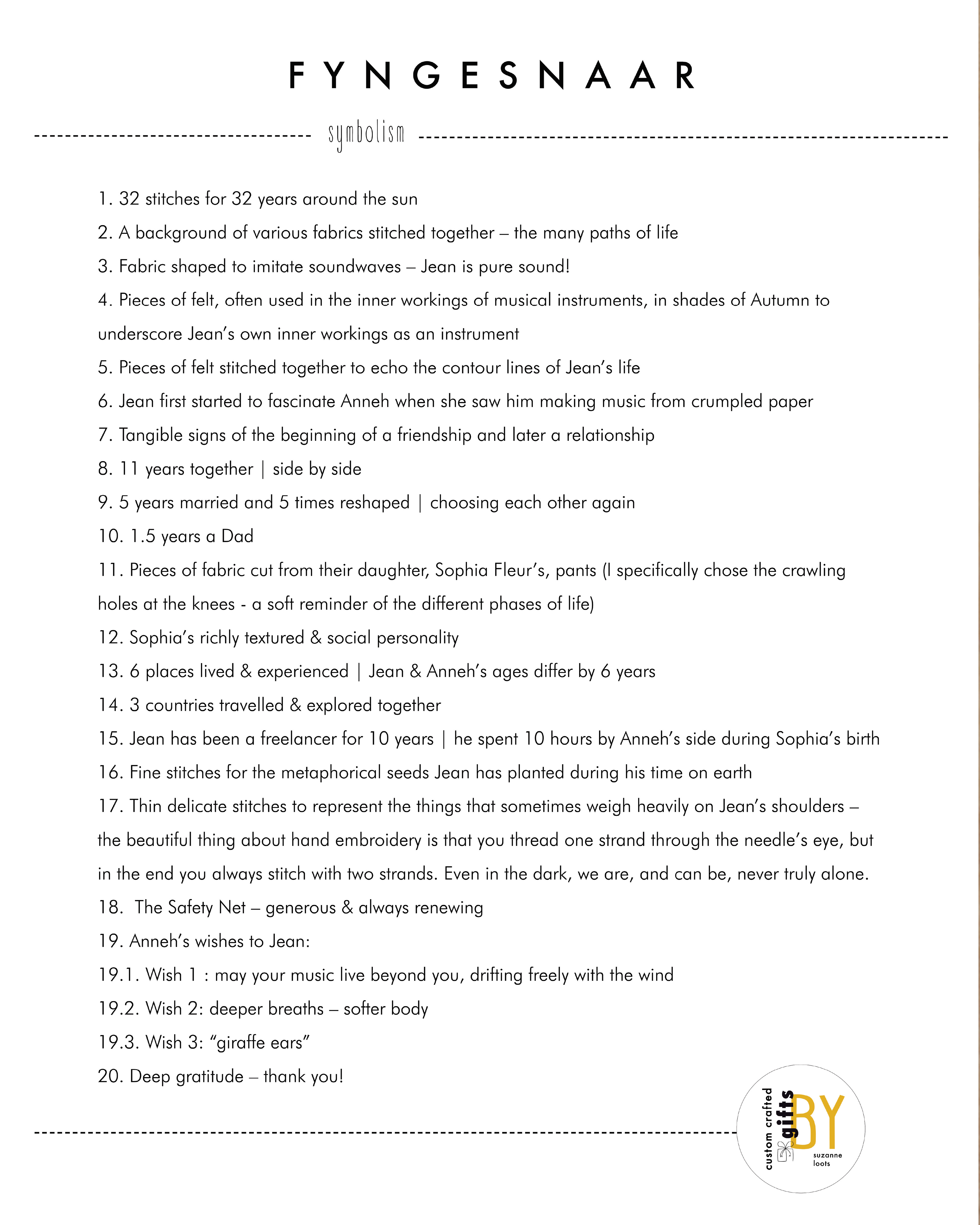 Most projects are invitations. To look deeper. See clearer, perhaps. This one invited me to move slower. Like a cup of tea in the late afternoon sun, or noticing how the air feels different after a storm. There’s a tenderness and a quiet slowness to it - a chance to breathe a little deeper. That’s what creating this gift felt like. Anneh commissioned me to create an artwork for her husband, Jean, in celebration of his 32nd birthday. From the beginning, she shared that if there’s one thing Jean doesn’t just love but truly ís, it’s music. And so, I aimed to capture the sounds of Jean, and the things that add sound to his life, in material form. Working with Anneh was a dream. She was thoughtful, sensitive, and intentional in every detail. (She even made a playlist for me to listen to as I work. And, so this artwork is also infused with their favourite songs!)