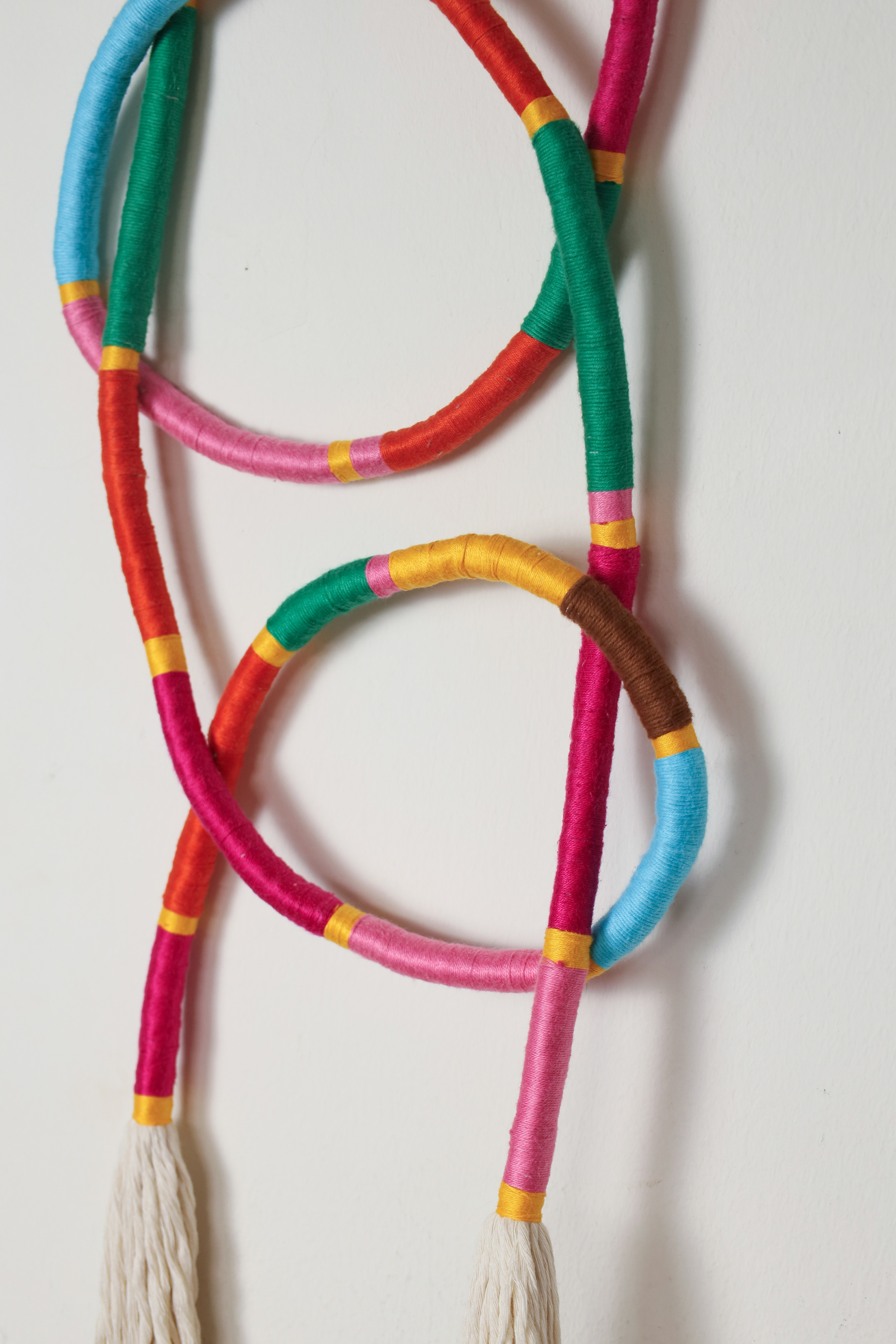 The interlacing of the ropes, together with the bright threads woven throughout, speaks to the many ways Janice brings light and richness into the lives around her. She keeps showing up through every twist and turn of life. The work also echoes the ease with which she allows the stories of others to fold into her own, and how her story, in turn, becomes woven into theirs.