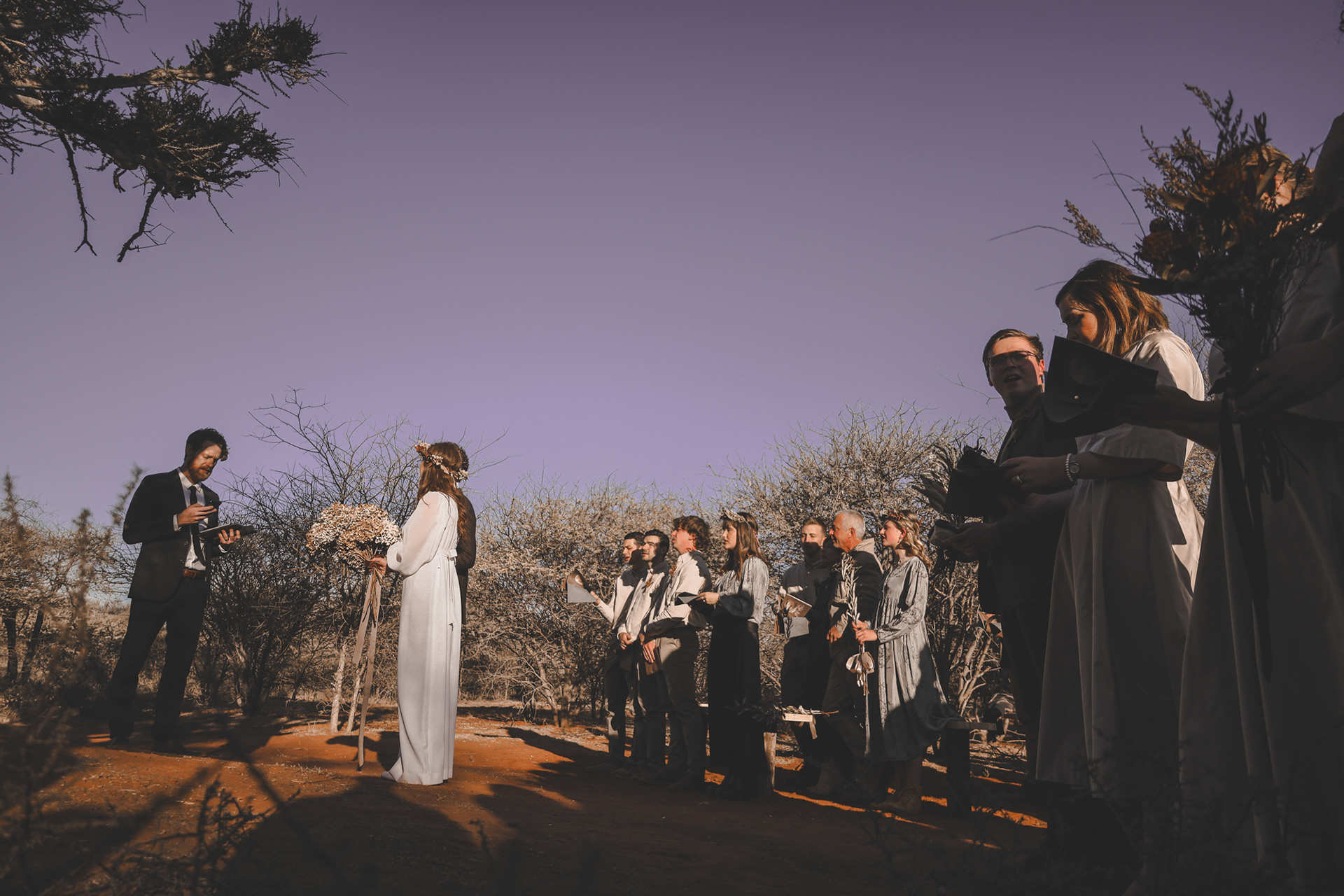 On a winter day, Lielie and MP celebrated their wedding on Lielie's family farm in the far northern part of South Africa. The journey there was quite the adventure—flying and then driving for hours to a location that was completely remote. The journey seemed fitting, because getting to know Lielie & MP though their wedding I have realised that one really needs to travel far and wide to find two such down-to earth and kindhearted humans. Their wedding day was filled with handmade decor, playful moments, and heartfelt poetry. It was an honour to witness their love and compassion.